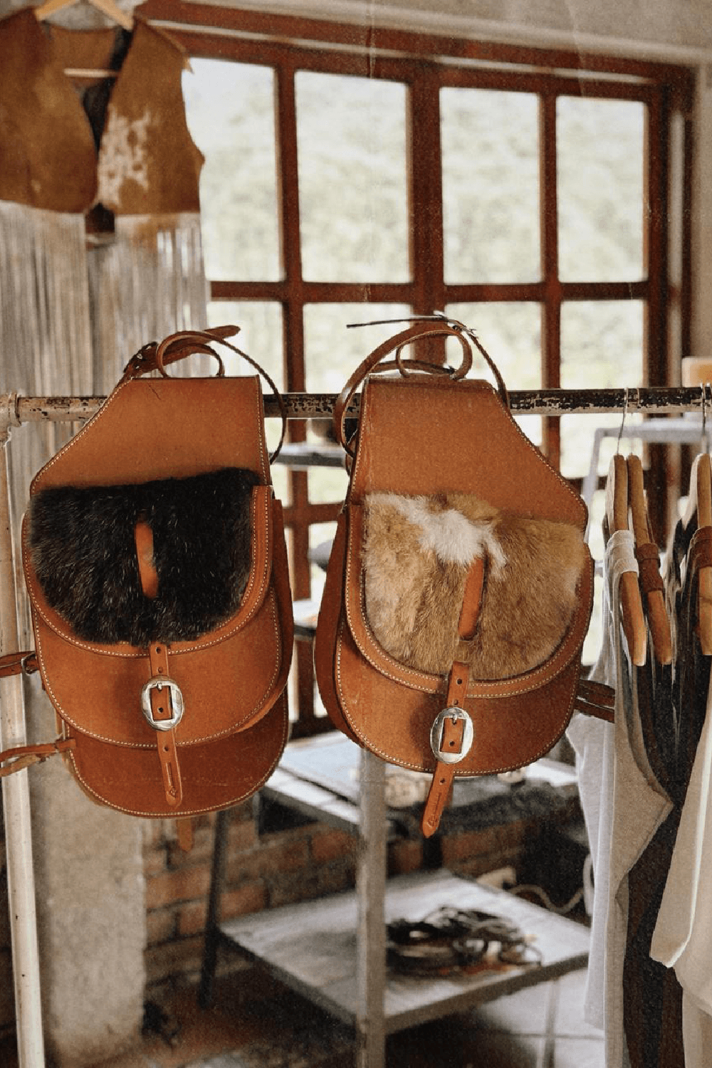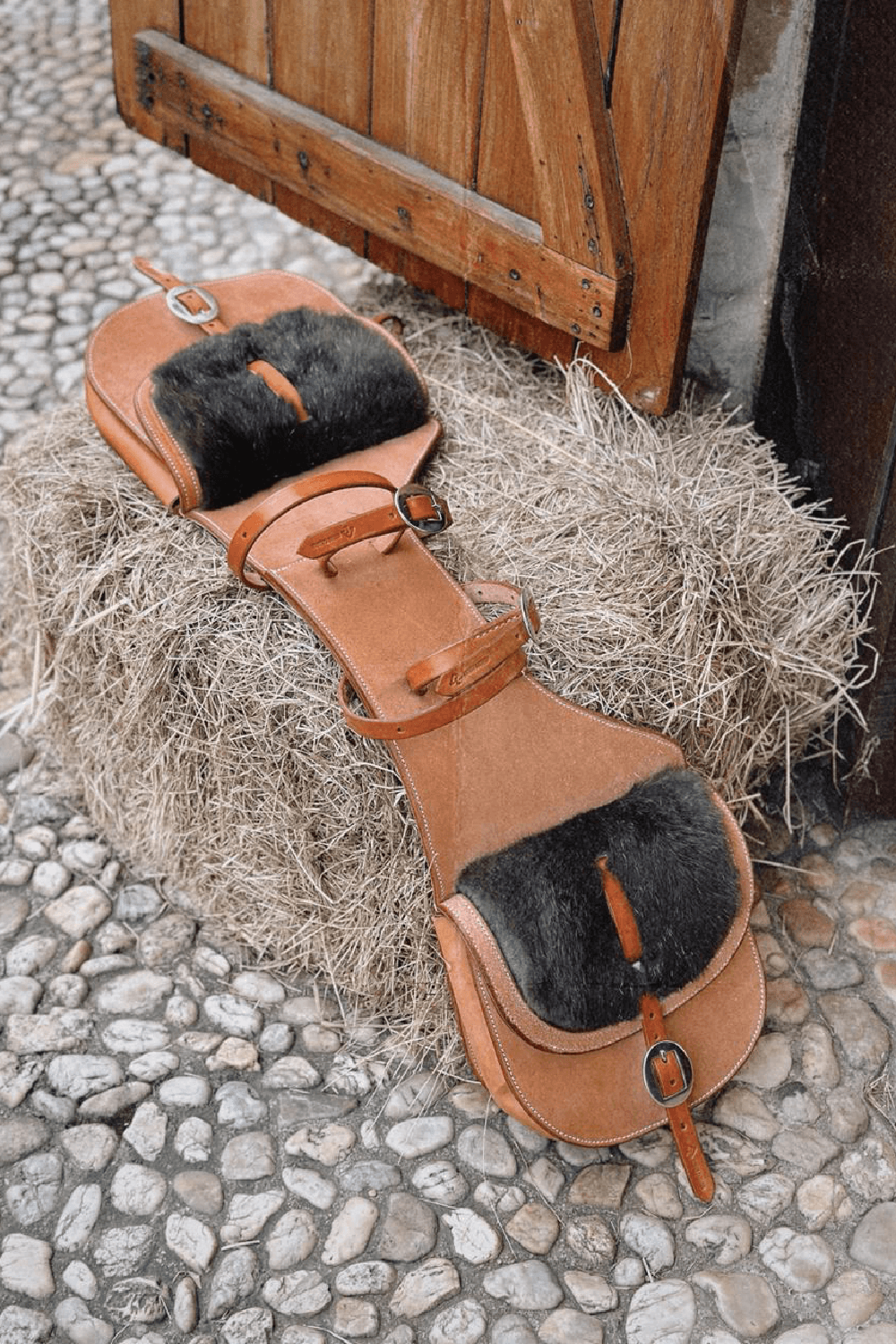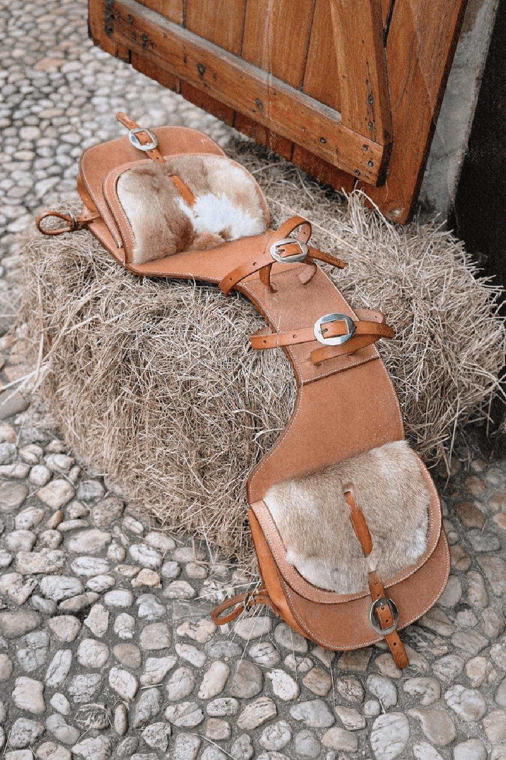 Nuestras alforjas son 100% en cuero y pelo de conejo.